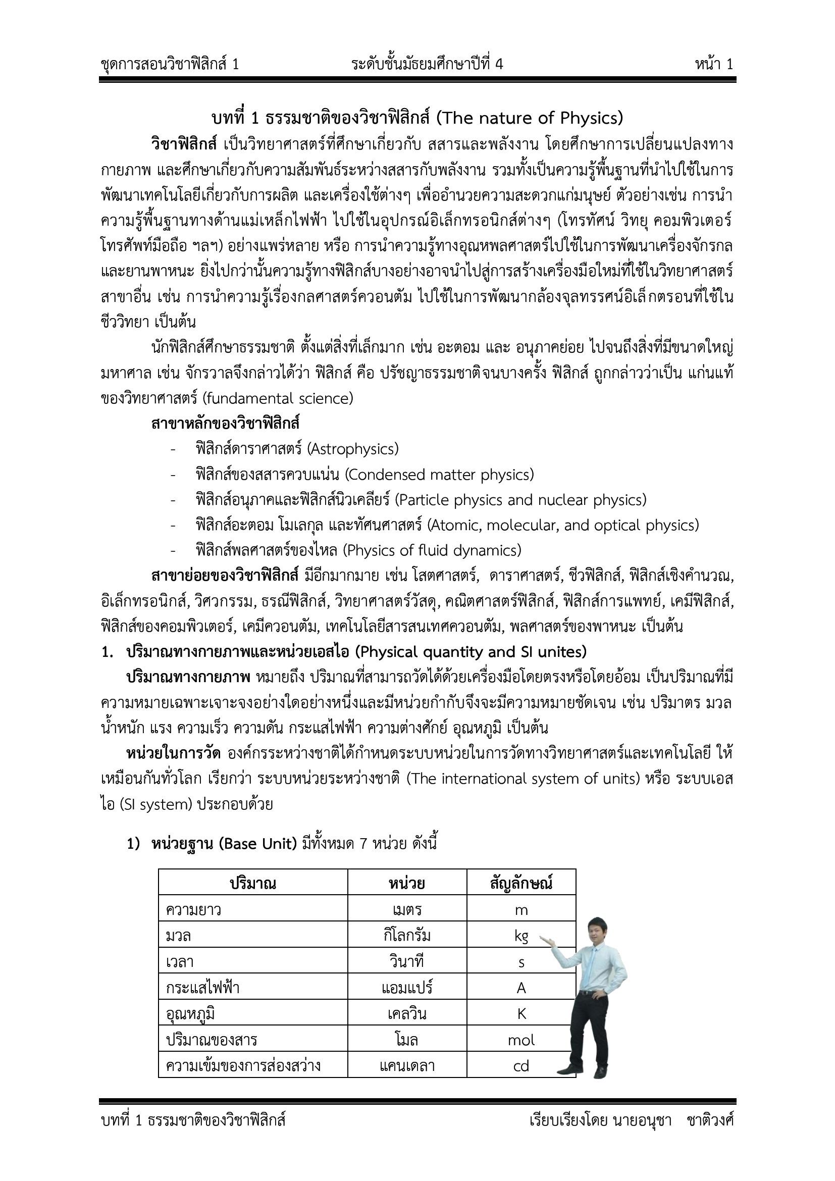 เอกสารประกอบการเรียน วิชาฟิสิกส์ 1 ครู Little